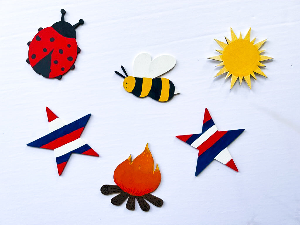 Interchangeable graphic inserts for our welcome signs! There's an insert for every season, holiday, time of the year, and more. They attach to the sign with hook and loop fasteners. If you don’t see a shape you are looking for, message us to see if we can do a custom shape.